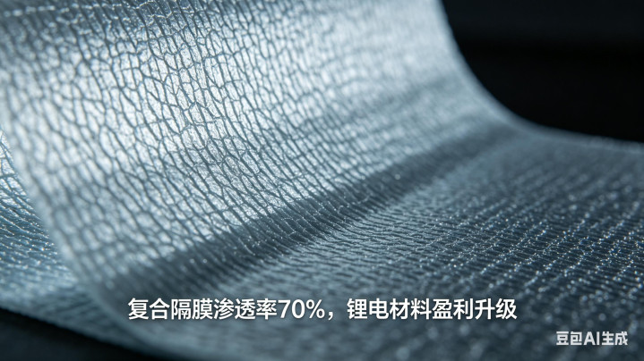 锂电隔膜是锂电池核心材料(成本占比10%),2026年复合隔膜(湿法+涂覆)渗透率提升至70%,国内头部企业已实现8μm超薄隔膜量产。政策推动动力电池能量密度提升,隔膜技术迭代加速。