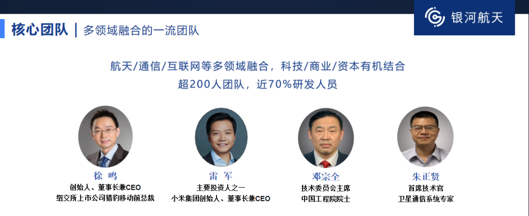 以冲刺IPO的几家公司为例:银河航天的创始人徐鸣虽出身互联网,但其技术委员会主席邓宗全是中国工程院院士,核心研发团队多来自航天科技、航天科工等国家队院所。