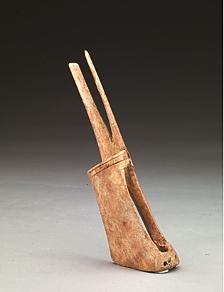 这些叉形骨器的用途是什么?考古学家为此争论不休。一种说法认为,贾湖叉形骨器与彝族毕摩(宗教祭祀长者)使用的法器“乌吐”高度相似。“乌吐”在祭祀仪式中用于沟通神灵、驱邪祈福。结合叉形骨器多与原始占卜工具龟甲共存的现象,专家推测它可能是巫术仪式中巫师使用的重要法器。另一种说法认为,双叉结构可固定羽毛等轻质材料,推测其可能是远古时期“候风仪”的底座,用于观测风向、测算节气,展现了贾湖先民对自然现象的探索欲。还有说法认为它是龟祭仪式上的法器,或者是龟甲响器的一部分……