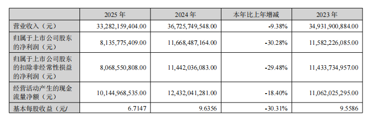 2025年对迈瑞医疗(300760.SZ)而言,是一个需要重新定义增长的年份。这家被业界誉为“中国医疗器械一哥”的企业,在2025年年报中交出上市七年来首份“双降”业绩单:营业收入332.82亿元,同比下滑9.38%;归母净利润81.36亿元,同比下降30.28%。